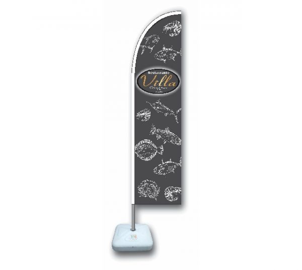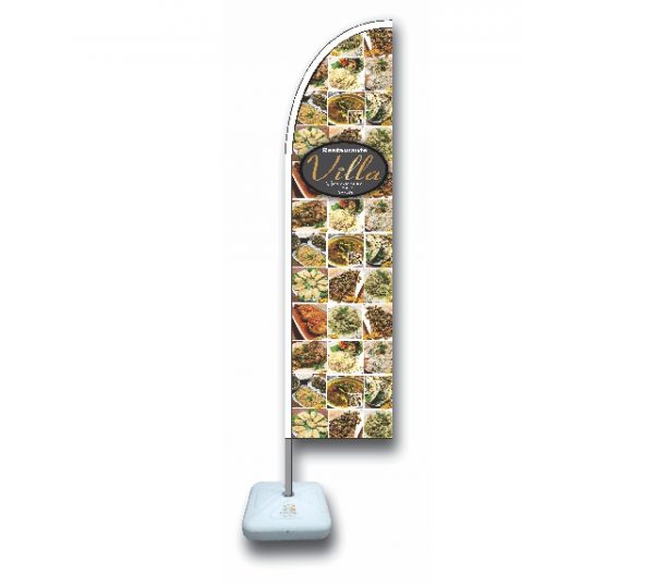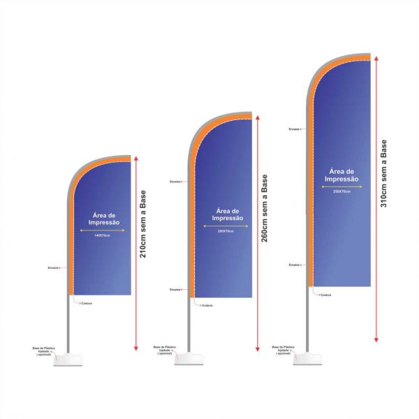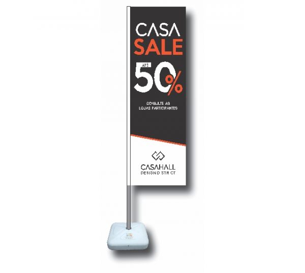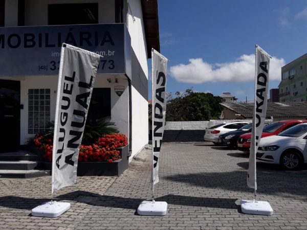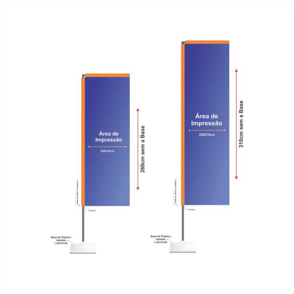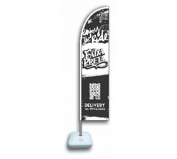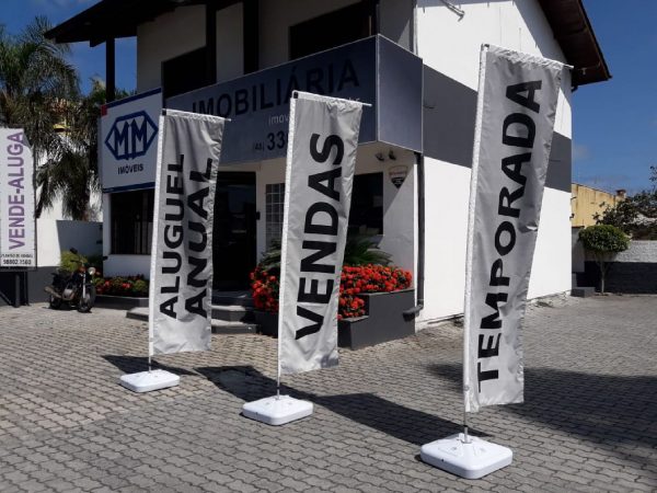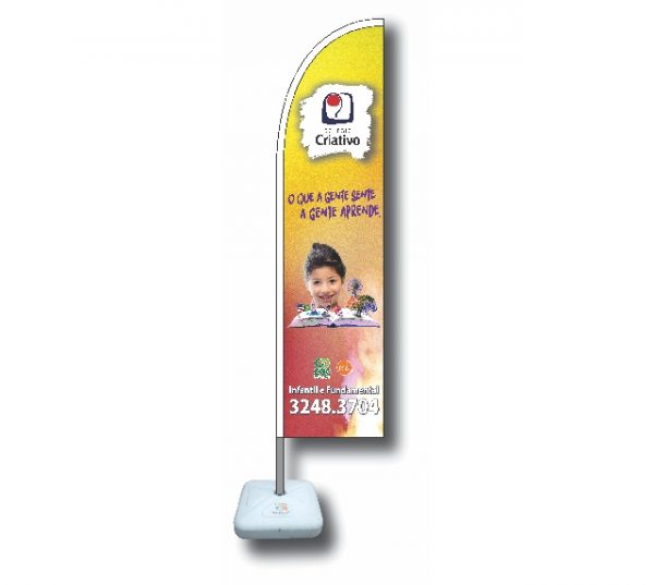 Wind Banner é confeccionado em poliéster em tamanhos e formatos diferentes, com uma ou dupla face.